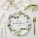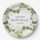 Bridal shower paper plates feature white roses, green and gold leaves with your details in chic lettering. MATCHING items in our collection.