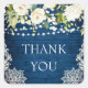 Elegant White Roses Lace Rustic Wood Thank You Square Sticker