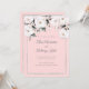 Delicate white roses arrangement on the top this elegant soft pink background wedding invitation. Silver frame nestling the wedding invitation details in grey typography.