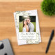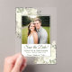 These beautiful acrylic cards are a special and unique way to let your friends and family know to save the date for your upcoming wedding. The rustic boho chic design features your photo surrounded by hand painted watercolor roses and blossoms in shades of ivory and white, along with sage green sprigs of eucalyptus and garden greenery. There is room below for your names, the wedding date and location. Stunningly beautiful way to begin your wedding journey.