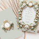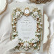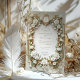 Set the tone for your wedding day with this exquisite invitation design, featuring delicate white roses surrounded by lush green foliage. The card is framed with ornate faux gold baroque and art deco-inspired patterns, giving it a timeless and sophisticated feel. The soft sage green background adds a touch of elegance, making it perfect for formal weddings or romantic events. Please note, the gold and embossed effects are part of the printed design and do not include real metallic foil or raised textures.