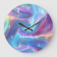 Cute photo of Pretty shimmer glam holographic Iridescent with white rough numbers. You can add your own photo or personalised text to create your own wall clock. This will be perfect as personised gift.