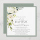 Elegant White Sage Green Watercolor Floral Baptism Invitation