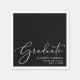 Elegant black graduation party napkins with "Graduate" in a chic white script and the grad's name, school and class year in simple modern white typography.