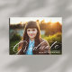 This graduation announcement features a full-frame photo and elegant calligraphy "graduate" in white. This classic yet modern design really allows your photo to shine by keeping the details minimal, while the greeting sets the happy tone. Tip: you can easily add more text or an additional photo to the back by removing the optional pattern backer.