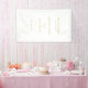 Elegant, script font "Welcome" white Wedding Banner. Personalised in minutes. This minimalistic welcome banner suits many wedding styles. It matches all colours of your wedding decoration and looks appropriate in every season. Add your data, and you can select the font, colour, size and position individually by clicking "Personalise more".