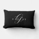 Elegant White Script Monogram & Grey Name on Black Lumbar Cushion