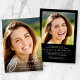 Celebrate your graduate's achievements with this elegant black graduation announcement and party invitation. Their photo fills the front of the card overlayed with "Graduate" in a chic white script; underneath, add their name, school and class year in classic white serif typography. On the back, add an additional photograph and your graduation party details in simple white lettering.