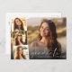Elegant graduation announcement and party invitation postcard featuring the graduate's photo overlayed with a strip of three smaller square photos and "Graduate" in a modern white script and their name and class year in simple white typography. On the reverse side, add the party details.