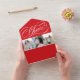 This modern holiday photo card features a classic red and white colour palette with an elegant script greeting, one horizontal and three small vertical photos. On the outside flap of the card is your return address. The photo can be torn away and kept as a keepsake. As you can see there is need to order envelopes - simply fold the card and secure the sides with the included stickers. Addresses and postage on the front.