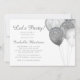 Fun and elegant Sweet 16 birthday party invitation in white with silver glitter balloons and an elegant calligraphy / script font. Text says, "Let's Party." Contact us for help with customisation or to request matching products.