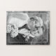 Elegant white thin border and initials wedding jigsaw puzzle. A lovely design for the newlyweds. It features a black and white photo of the couple, a white thin border and the couple's initials in a frame on the bottom center.