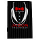 Elegant white tuxedo illustration, red tie with customisable groomsman name.