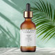 An elegant minimalist cosmetics bottle label with a white background, black text, and a faux gold border. This label contains space for your product name, business name, product weight, ingredients, instructions, social media, and business address. This label measures 3.75 inches by 2 inches (95 mm by 51 mm) and is suitable for bottles with a diameter of 1.2 inches (31 mm) or more such as 2 oz (60 ml) to 4 oz (120 ml) bullet, cylinder, and boston round bottles. It can also be used for cosmetic jars and other types of cosmetics packaging.