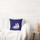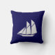 Elegant modern silver white yacht on navy blue Throw Pillow.