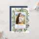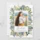 Our Wild Meadow graduation party invitations feature a flowing script font and your graduate's photo framed by beautiful watercolor foliage in shades of green and navy blue. Personalise the elegant graduation party invitations by adding the graduate's name, school, year, and party details on the back for an invitation that will impress your guests.