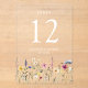 Add a touch of natural beauty to your wedding decor with our Elegant Wildflower Meadow Wedding Table Number Cards. These charming table cards feature a vibrant border of watercolor wildflowers and foliage in shades of pink, yellow, purple, blue, and green along the bottom, set against a frosted or transparent acrylic background. Perfect for spring and summer weddings, the rustic wildflower design brings a fresh, garden-inspired feel to your celebration. Personalise each card with your names, wedding date, and table number. To order, add each table number individually to your cart and check out when you’re ready.