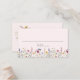 Elegant floral wedding place card featuring watercolor wildflowers and foliage in shades of pink, yellow, purple, blue, and green bordering the bottom of the design with a blush pink background. The boho floral place cards reverse to display your names and wedding date inside of a rectangle frame of wildflowers. The rustic wildflower wedding place cards are perfect for spring and summer weddings.