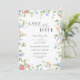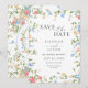 Announce your wedding in romantic garden style with this wildflower Save the Date card. Delicate watercolor florals in soft blush, blue, and golden hues frame the design, creating a fresh botanical look that feels both timeless and elegant. Graceful script paired with classic serif typography adds a refined touch, perfect for garden weddings, spring and summer celebrations, and rustic countryside venues.