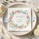 Perfect for cocktail hour, reception tables, dessert displays, beverage bars, and bridal showers, these custom napkins coordinate seamlessly with matching invitations, menus, and signage. The refined serif typography paired with airy botanical blooms creates a look that feels both classic and fresh — ideal for spring weddings, summer celebrations, garden venues, and outdoor receptions.
