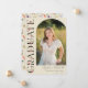 This elegant stylish photo graduation announcement features a vertical photo in arch style and headline in wildflower text with customisable script name and text on a light beige/cream background. Back features wildflower pattern. A great way to showcase your graduate. Click the edit button to personalise this design.