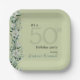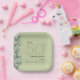 Make your loved one’s 50th extra special with this chic Surprise Party Plate. The elegant script “Surprise” is highlighted by “Shhh, it’s a” above and “Party” below in serif font, with the milestone “50” subtly in the background. Soft green tones and a watercolor white wildflower border add a touch of sophistication. All details, from the guest of honour’s name to RSVP information, are easy to customise. Ideal for thoughtful family planners creating a memorable surprise.