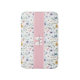 Personalised Elegant Wildflower Monogram Shower Curtain. Add a soft, colourful touch to your bathroom with this elegant design featuring a delicate wildflower pattern in pastel shades of pink, purple, blue, yellow, and green on a white background. At the centre, a pink bar stretches across with a white and grey monogram for a graceful, personalised accent. All colours can be changed to match your decor. Perfect for weddings, housewarmings, or birthdays, this floral shower curtain brings a fresh, timeless look to any space.