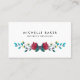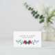 Elegant floral business card featuring illustrations of colorful wildflowers in red, yellow, and green colors formed as a wreath. Great for florists and designers.