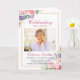 This elegant memorial program features pretty watercolor flowers framing the photo of your loved one. The inside features two additional photos alongside the obituary, the order of service, arrangements text, acknowledgements, and funeral reception information if desired. This program can be personalised further by clicking the "edit design" link at the bottom of the personalisation box if desired.