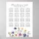 Please find your seat foam for an elegant spring wedding. Pretty wildflowers decorate the bottom of this colorful spring wedding seating chart poster for up to 16 tables at your reception. Watercolor floral borders are perfect for a garden ceremony while flowers are in bloom. Elegant script dances above a beautiful orange, purple, yellow, and blue botanical meadow on this personalized decor.