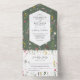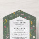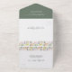 Rustic bohemian wedding all in one invitations featuring delicate watercolor wildflowers, a modern wedding template, and a tear off perforated meal RSVP postcard. No envelopes needed for shipping, simply fold each card into the outlined shape, and then seal and send, its that easy!