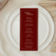 Elegant Wine Red Script Monogram Wedding Menu. Personalize with your starters, entrées, and desserts, and add bride and groom initials in a classic monogram on the back.