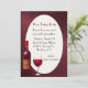 A rich burgundy damask background sets the tone, for this elegant wine tasting invitation. An off white oval, in the middle has custom burgundy and black text ready to personalise for your get together. Lovely graphics of a wine bottle and a glass of red wine decorates the bottom left corner.