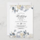Celebrate in style with this elegant winter-themed birthday invitation featuring delicate watercolor blue and white flowers, soft beige accents, and gentle botanical greenery. The refined floral artwork frames a beautifully balanced layout with classic serif and handwritten script typography, creating a timeless and sophisticated look suitable for any age.
