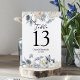Elegant Winter Blue And White Flowers Table Number