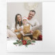 Colourful, elegant and festive watercolor wreath with deep red and green poinsettias, berries and greenery encircles your initial or monogram on a two-photo template and editable text fields. The panels feature additional text fields, complementary winter botanical embellishments and two additional photo templates.