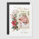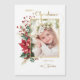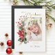 Your cherished holiday photo will make a memorable statement with this classic Christmas floral design. It features a single portrait-aspect photo template with a faux gold border surrounded by vibrant and festive red, green and gold winter botanicals and custom gold Merry Christmas calligraphy script greeting. Includes editable text fields.