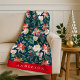 Elegant Winter Floral Green Personalised Holiday Fleece Blanket