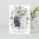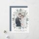 Wish friends and family a happy holiday with our Elegant Winter Foliage holiday photo card. The stylish holiday card displays your favourite photo on the front framed by watercolor leaves and foliage in shades of green and navy blue. Personalise the front by adding a custom greeting and your family name. The reverse side of the card features two more of your photos with a custom message and your names below against a muted periwinkle blue background.