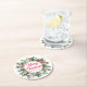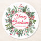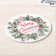 Elegant Winter Greenery Merry Christmas Red Script Round Paper Coaster
