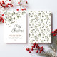 Elegant non-photo Christmas card featuring watercolor winter greenery with berries. It can be personalised with your sentiment and family name, as well as the year. The back of the card features a coordinating pattern.