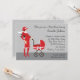 An elegant and chic invitation for a winter or Christmas Baby Shower featuring a stylish mum dressed in red with a red baby carriage on a grey patterned background. The text is fully customisable for your own special occasion honouring the upcoming birth of your beautiful baby boy or baby girl.