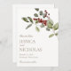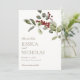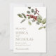 Winter Greenery Wedding Save the Date card featuring a watercolor holly branch. Customise with your information. Click "click to customise further" to change the font style, size or colour.