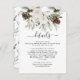 This elegant winter wedding pine cone details enclosure card is perfect for an elegant holiday or winter wedding. The design features beautiful watercolor white florals with pine cones, and forest greenery in sage green, white and brown. This is a perfect colour scheme for a winter wedding. Make this details card your own by including any details you want to share such a directions, accommodations or registry info.