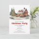 Invite your loved ones to a warm and joyful celebration with this watercolor Christmas invitation featuring a cozy Christmas house and festive winter scene. Designed in a classic red and green color palette, this card captures the timeless beauty of the season with its hand-drawn details and playful lettering.