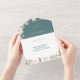 This custom elegant invitation is a beautiful blending of green, blue, and grey. Perfect for a winter wedding. The all on one design makes it easy for guests to return their RSVP. No losing cards or small envelopes! Watch for matching items in the collection