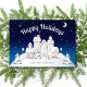 This elegant holiday card features a peaceful snowy winter village on a hillside. Perfect for sending season's greetings to clients, employees and everyone on your list. Front of card features "Happy Holidays" and your company name. Back of card features your personalised holiday message. Celebrate the season with this elegant holiday card from Cherry Lane Designs!