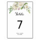 This elegant winter white peony wedding table number is perfect for a destination wedding reception. The design features a bouquet of hand-painted burgundy, green and brown leaves with fresh-looking white peonies, inspiring bliss and natural beauty.