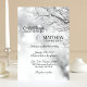 Personalise these elegant winter theme wedding invitations. Winter wonderland scene with white snow, twinkle snowflakes, lights with branch / twig and snow and icicles. Black and white colours. Editable cards - add your info (text can be changed to any font, size, and colour). Back of card has bride and grooms initials. Perfect for any winter theme wedding party.