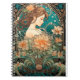 This Art Nouveau notebook features an elegant woman on the cover, surrounded by an ornate frame and beautiful soft flowers.